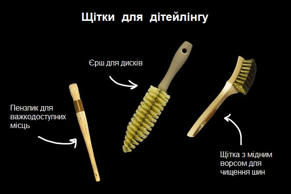 Пензли та щітки різних виробників можуть відрізнятися за формою. У загальному випадку, у пензликів повинен бути м'який ворс, а у щіток для колісних арок та йоржика для дисків ворс має бути середньої жорсткості. Щітки для шин мають бути жорсткими, - ворс таких щіток може бути металевим. Рукоятки пензлів та щіток не повинні бути виготовлені з металу або мати металеві вставки.