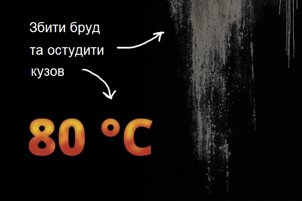 - Збити бруд та остудити кузов. Восени, взимку та навесні кузов часто покритий товстим шаром бруду, який заважає роботі активної піни. Влітку ж кузов може нагріватися до +80°C через що активна піна занадто швидко висихає і не встигає подіяти. Насамперед, миття автівки повинно проводитися у закритому приміщенні при кімнатній температурі або у тіні. У жодному разі не можна мити автомобіль під прямими променями сонця при нагрітому кузові. Перед нанесенням активної піни, за допомогою апарату високого тиску, необхідно збити бруд та остудити кузов струменем води.