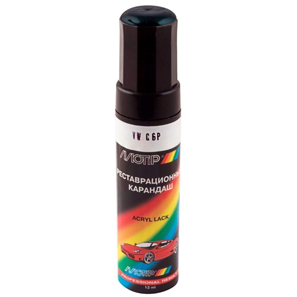 Реставраційний олівець Motip для авто Volkswagen, колір LC6P зелений металік. Виробник: "Motip Dupli Group". Країна-виробник: Нідерланди. Являє собою, заповнений автоемаллю, алюмінієвий флакон об'ємом 12 мл з пензликом. Призначений для точкового ремонту лакофарбового покриття автівки - підфарбовування відколів, тріщин, подряпин. Автоемаль характеризується стійкістю до погодних умов, має високу механічну міцність, відмінну адгезію та покриванність. Володіє високою атмосферостійкістю, а також стійкістю до миючих засобів, мінеральної оливи, бензину. Покриття стійке до зміни температур від -30 до 110°C. Вимагає покриття безбарвним акриловим лаком.